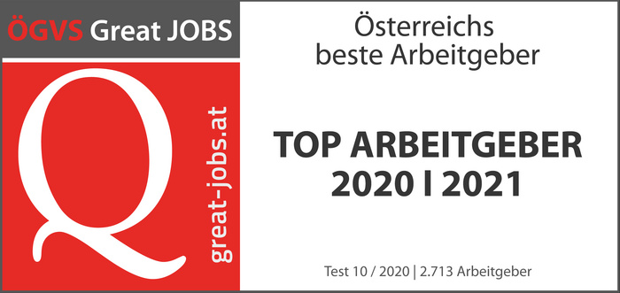 Jene Unternehmen, die am Ende der Untersuchung eine Zielerreichung von mindestens 70% in der Gesamtwertung aller drei Module erreichten, werden mit dem Great Jobs-Siegel „TOP Arbeitgeber“ der ÖGVS ausgezeichnet.